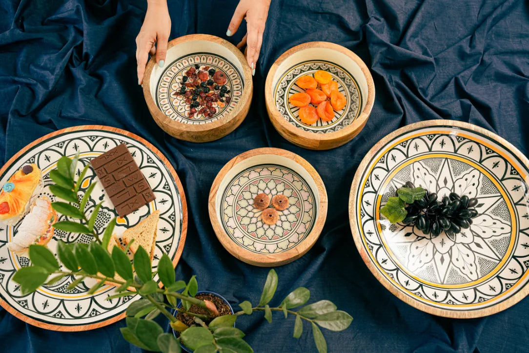 Introducing the Mandala/Moroccan Collection by Earthiekart - a stunning range of handmade Indian wooden serveware that is perfect for adding a touch of elegance to your dining experience. Made with love by skilled artisans, each piece in this collection is unique and exquisitely crafted.