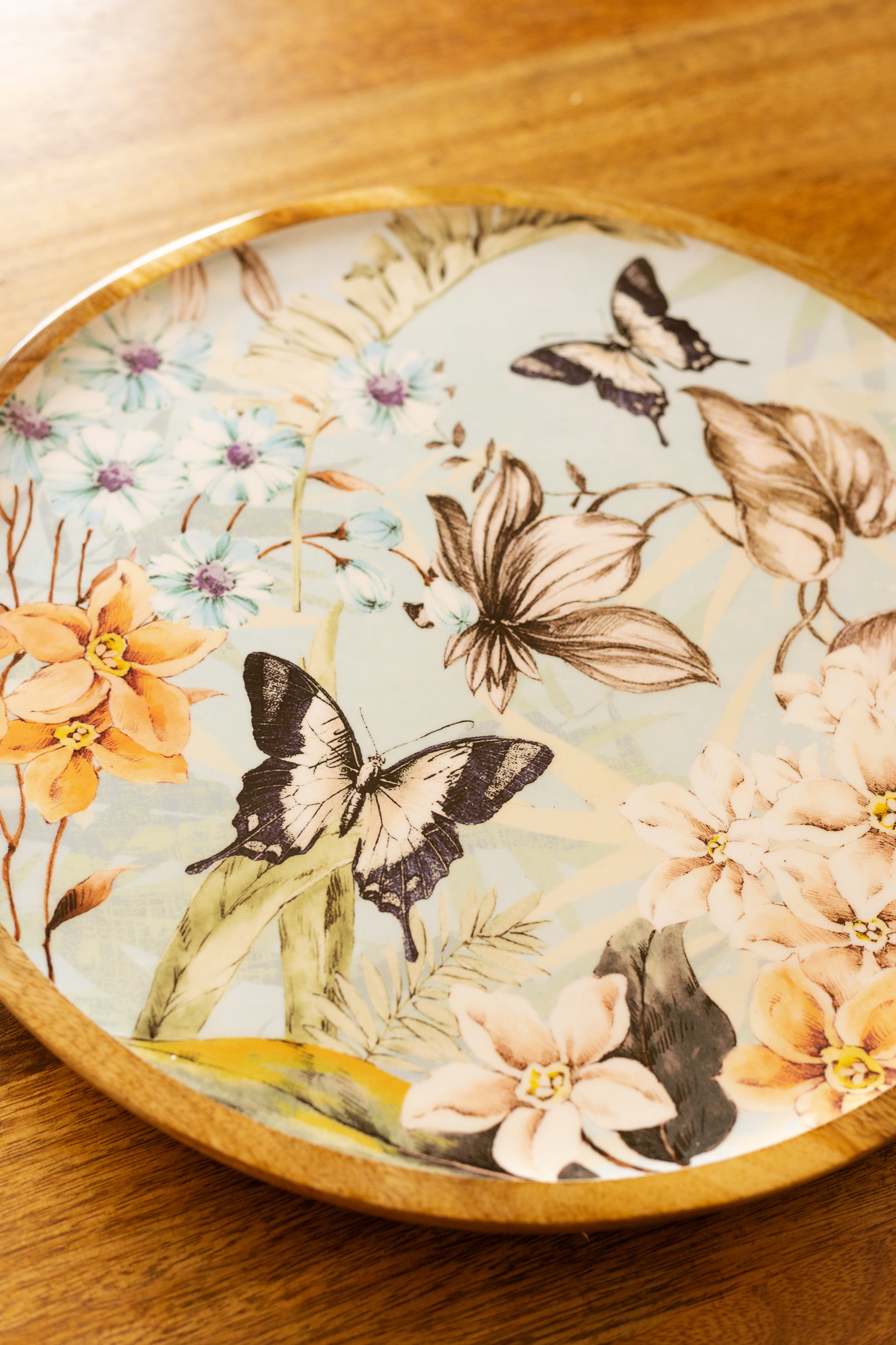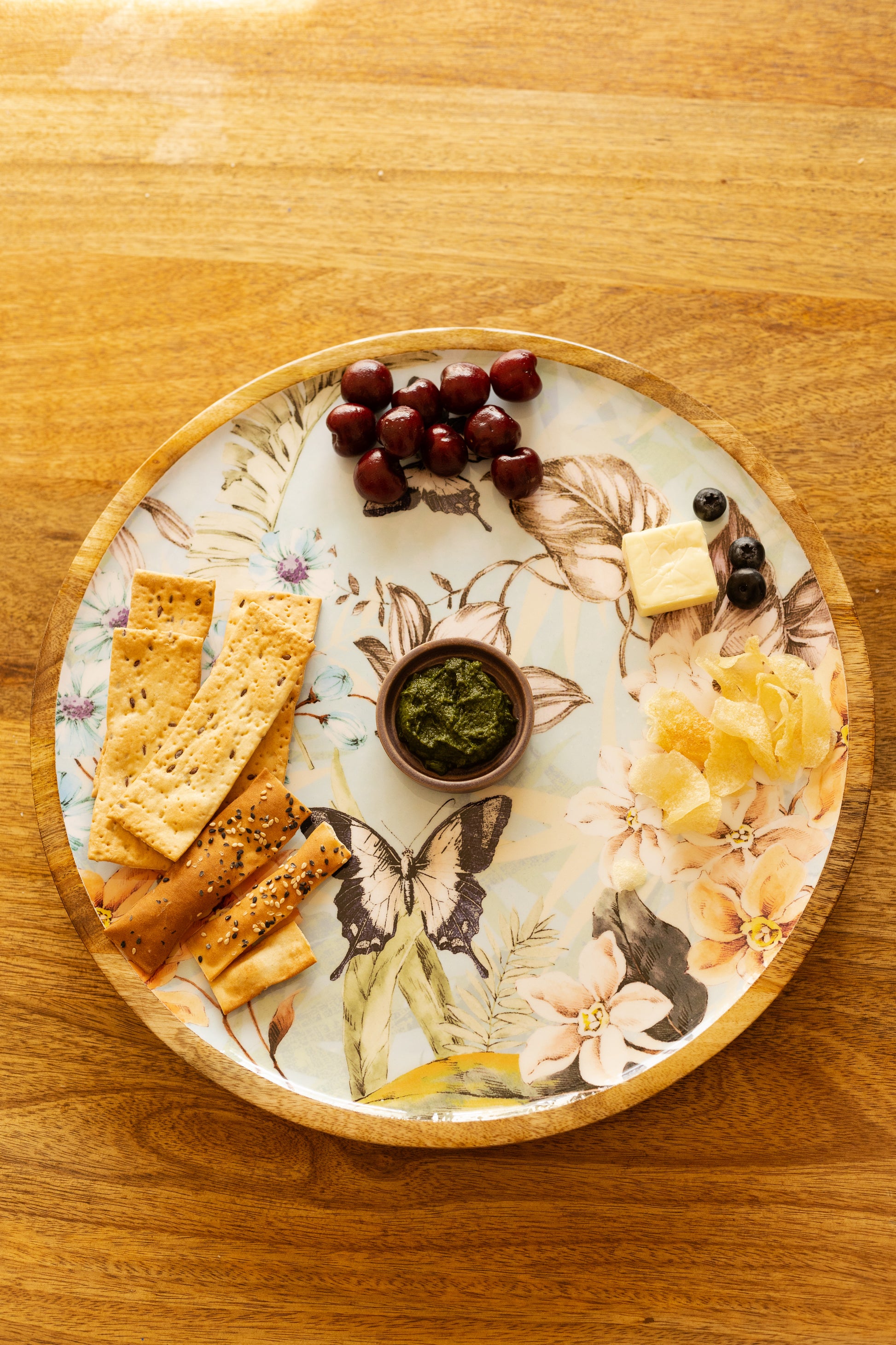 Elegant Mango Wood & Enamel Cheese Platter – Versatile and Stylish