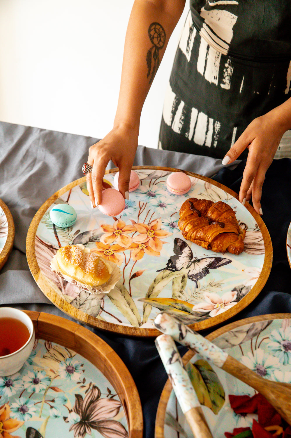 - Premium Mango Wood Construction: Known for its durability and beautiful grain patterns, mango wood adds a touch of natural elegance to your table setting. Each platter is unique, showcasing the rich, warm hues of the wood.